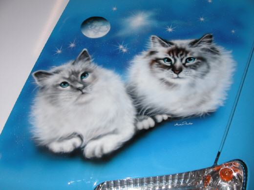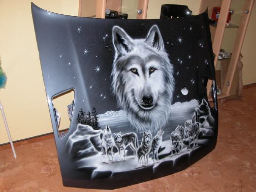 Airbrush-Technik auf allen geeigneten Oberflächen. Ob Sie nun Ihrem Auto das ganz besondere Etwas verliehen haben möchten oder Ihren Toilettendeckel mit Motivwünschen - wir machens´s möglich!
