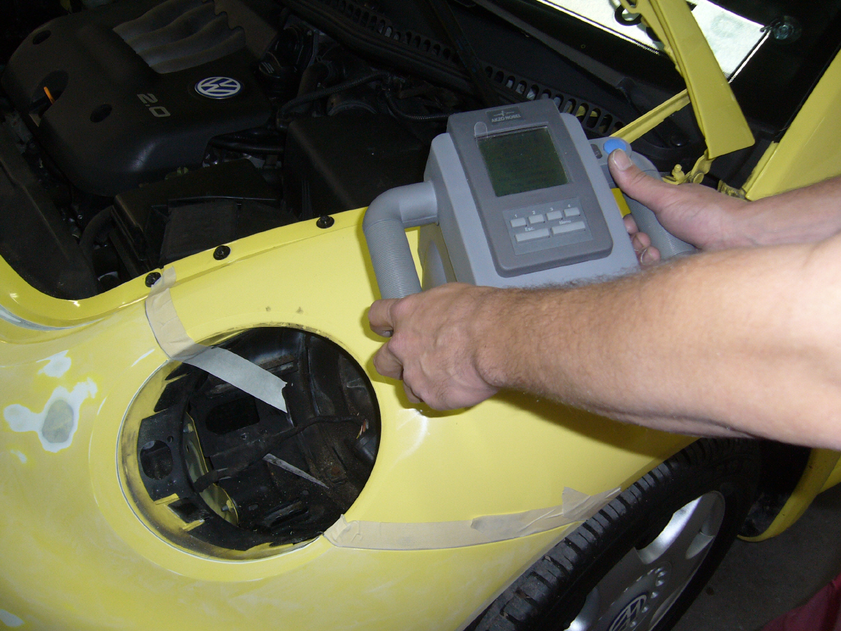 Durch neuste Technik ist es uns möglich den Farbton mit einem speziellen Farbtonmessgerät auf fast allen Oberflächen sehr genau zu bestimmen. Dies ist wichtig, da die Fahrzeuge bereits ab Werk Farbtonschwankungen (unterschiedliche Nuancen) haben. Auch hervorragend geeignet in der Oldtimerrestauration, da hier oftmals keine Daten mehr für damals verwendete Farbtöne vorhanden sind.